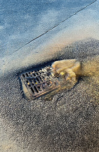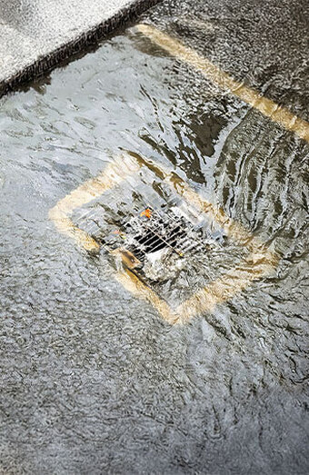 Immediate response to properties with water pooling in yards, driveways, or near structures due to blocked surface drains or strip grates.